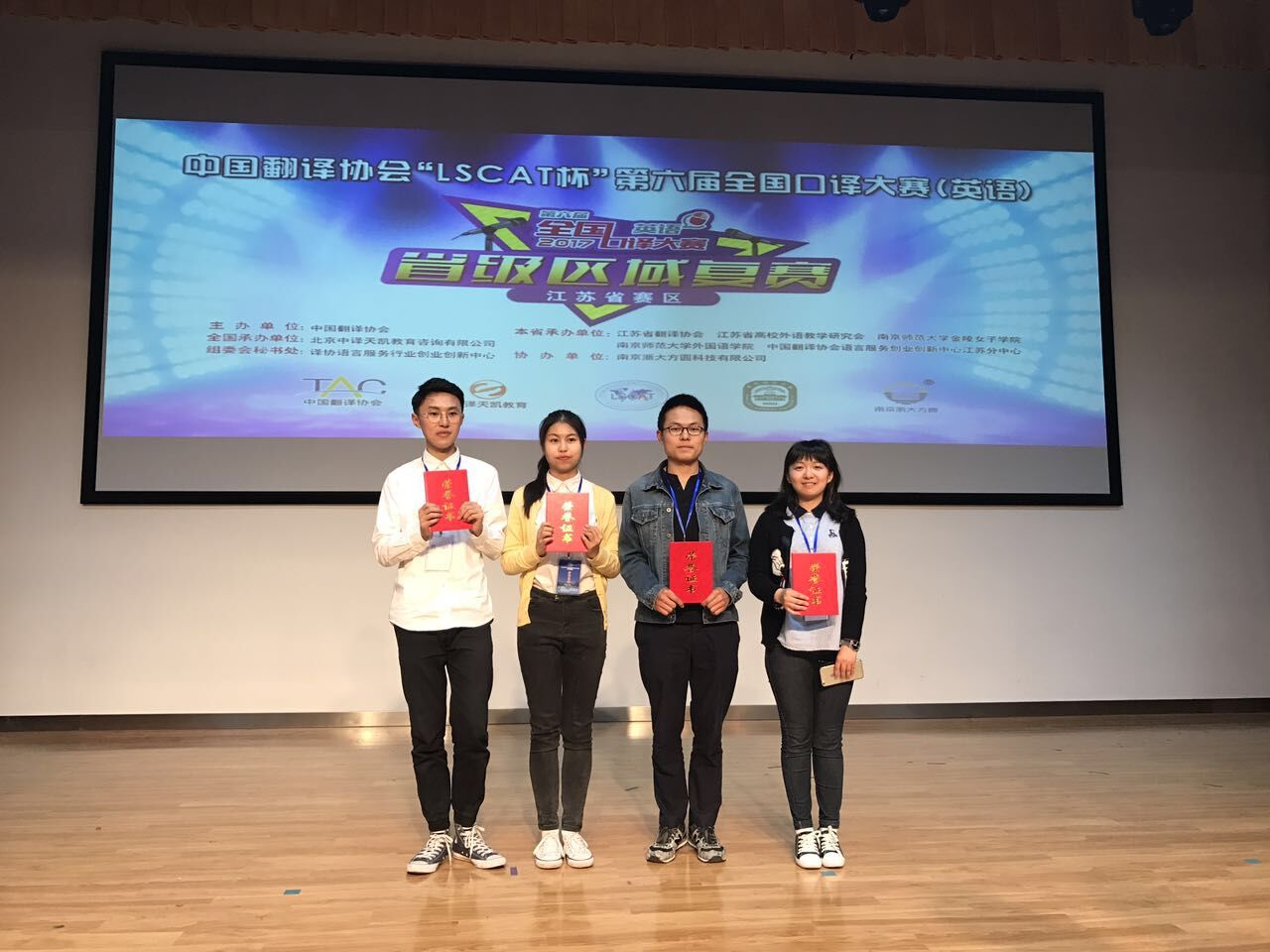 2017年4月22日,中国翻译协会“LSCAT杯”第六届全国口译大赛(英语)江苏省复赛于在南京师范大学举行。来自全省38所高校近160名选手参加了此次比赛。经过激烈角逐,共有44名同学晋级决赛。永利官网经过初赛选拔派出的5名参赛同学中有4名同学晋级决赛。经过决赛的角逐,最终英语142班尹自强同学荣获二等奖;翻译141班郭慧、商务英语141班杨昕澄、商务英语141班顾莉娜三位同学获得三等奖。以上四位同学全部有望晋级华东大区比赛。这一成绩是永利官网学生在口译赛事上的历史性突破,是永利官网深化口译教学,提升学生英语实践能力的优秀成果。(姜海红)