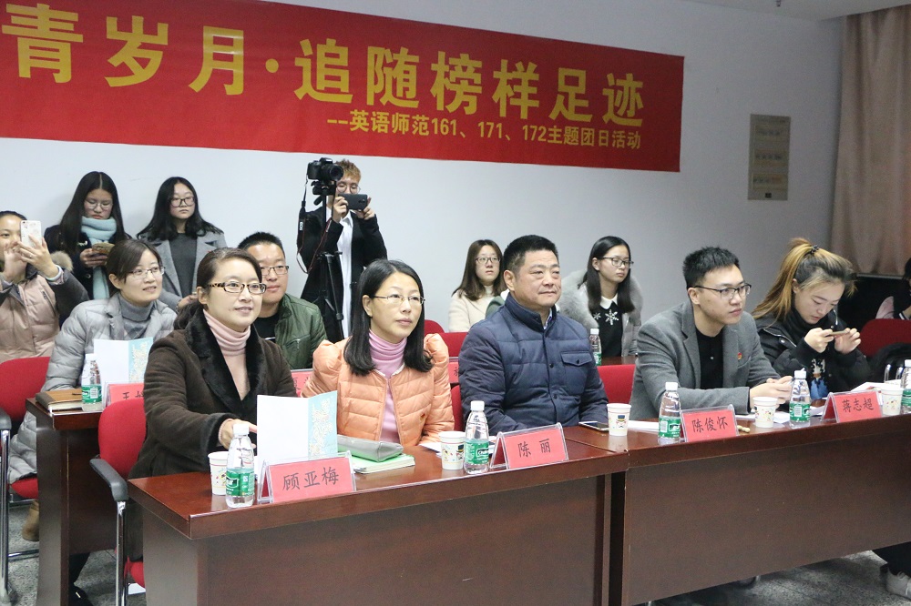 11月22日下午,yl8cc永利官网yl8cc永利官网“重温知青岁月·追随榜样足迹”主题团日活动在方肇周楼206成功举行。本次活动由外院英语师范161、171、172团支部联合主办;yl8cc永利官网党委副书记、副院长陈俊怀,学工办主任顾亚梅,团委书记王媛媛,各年级主任及团员青年代表参加了本次活动;校团委科学实践部李安琪,商学院团委书记蒋志超,化学化工学院团委书记陈丽受邀担任本次活动的评委嘉宾。