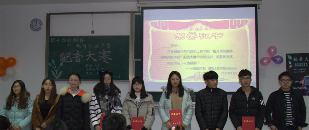 为激励学生对语言的学习运用,感受影视作品中声音的魅力,12月9日晚,由yl8cc永利官网与建筑工程学院心理协会联合举办的配音大赛在3号楼206教室成功举办。建筑工程学院心协指导老师,yl8cc永利官网心协一对一负责人潘艳雯,yl8cc永利官网新媒体办公室主任徐玲燕、心协主席孙畅,公共卫生学院心理协会副主席宗丽,建筑工程学院心协副主席杨宵、诚善协会会长张轶南参加了本次比赛。