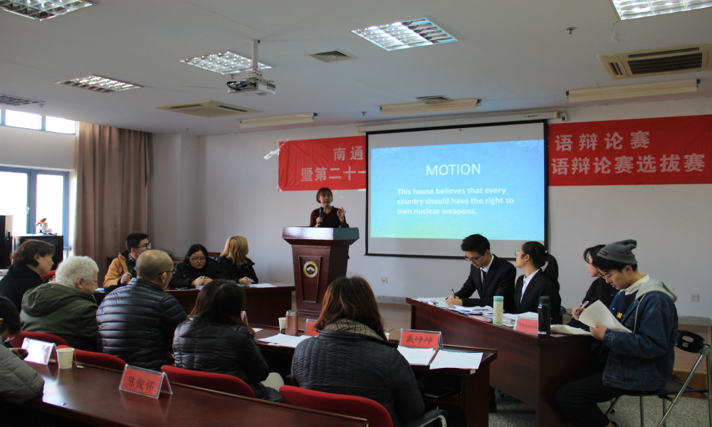 12月17日上午,yl8cc永利官网第三届大学生英语辩论赛决赛暨第二十一届“外研社杯”全国大学生英语辩论赛校园选拔赛在JSJ-206顺利举行。本次比赛由教务处、校团委主办,yl8cc永利官网承办。yl8cc永利官网副院长陆国君,外教Mindy、Richard,高帆副教授,戴峥峥副教授受邀担任评委。出席活动的嘉宾有yl8cc永利官网教务处实践科科长傅怀梁,yl8cc永利官网党委副书记、副院长陈俊怀,院团委书记王媛媛、17级年级主任夏光祥。