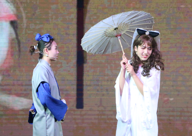 典礼共分为“锦瑟华年酿醇香”“风华正茂志自强”“不负韶华恒初心”三大篇章。典礼开场前,温馨的视频生动而全面地展现了外院17级新生初入大学的内心体悟以及老生对新生的拳拳寄语,表达了外院学子不忘学习初心,并在新年新作为的坚定决心。其后,热辣震撼的开场舞《Good Time》中拉开了典礼帷幕。在第一篇章“锦瑟华年酿醇香”中,沈玥、蒙媚欢、韩笑、郑权带来Katy Perry的英文歌曲《Firework》,青春洋溢,点燃了现场氛围;湖上木桥,架起奇缘,白蛇传奇,牵动人心,由郝彦奇、黄韶倩、孙心怡等同学带来的情景剧《白蛇新传》,重新演绎那段千百年间家喻户晓的爱情故事,令人耳目一新;随后,陈天绮、刘峙樊、费晨烊、闫翔宇以说唱歌曲《信》描绘出了当代中国经济、科技、文化等各项事业发展蒸蒸日上的景象;形神劲律韵无穷,圆游变幻美难尽,王玉庆、朱海云、李沁芮、陈凯雯等同学表演的舞蹈《大鱼》向现场观众展现大鱼的深情与执着。