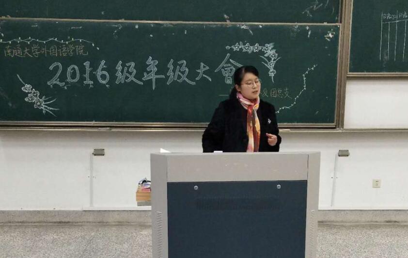 2016级年级大会上,院学工办主任、16级年级主任顾亚梅老师首先向学生介绍全国两会开展情况,并针对寒假期间的热点事件与学生进行交流;然后,顾老师以班级为单位公布了上学期的期末成绩等基本学情,提醒大家做好个人学习反思,备考专四等考试;其后,顾老师对大二上学期的年级整体情况进行了总结强调,并提出新学期的建议和期待,强调校园生活安全等各类事项。
