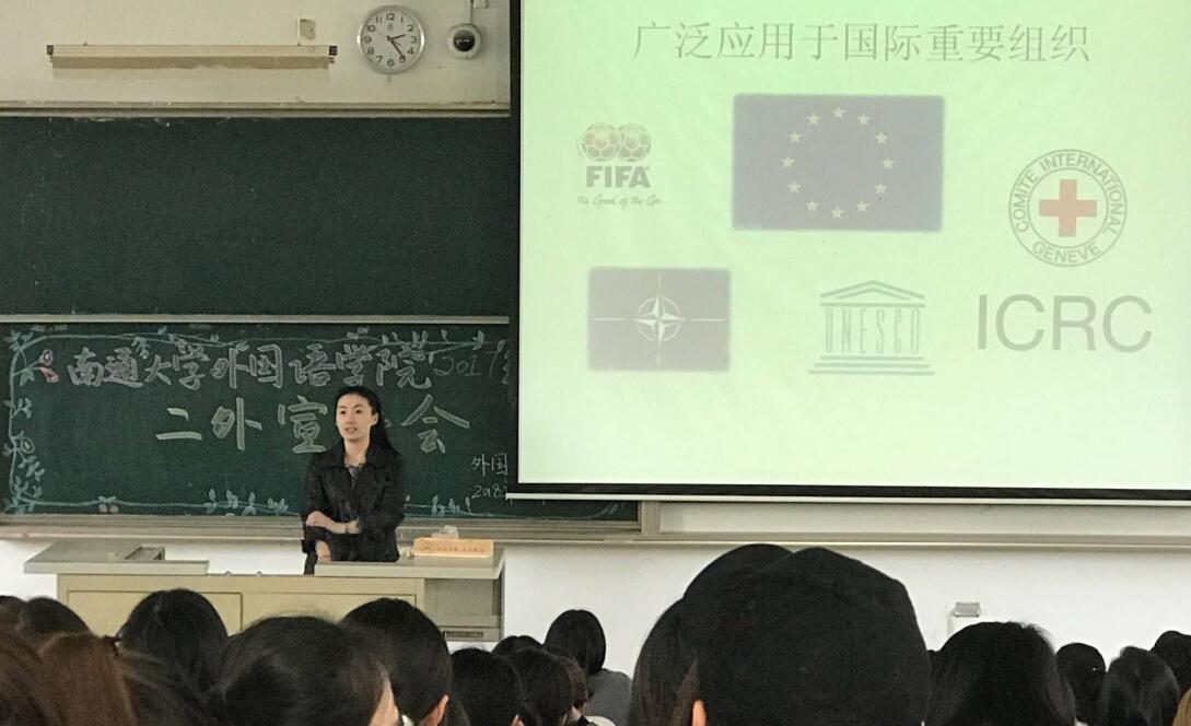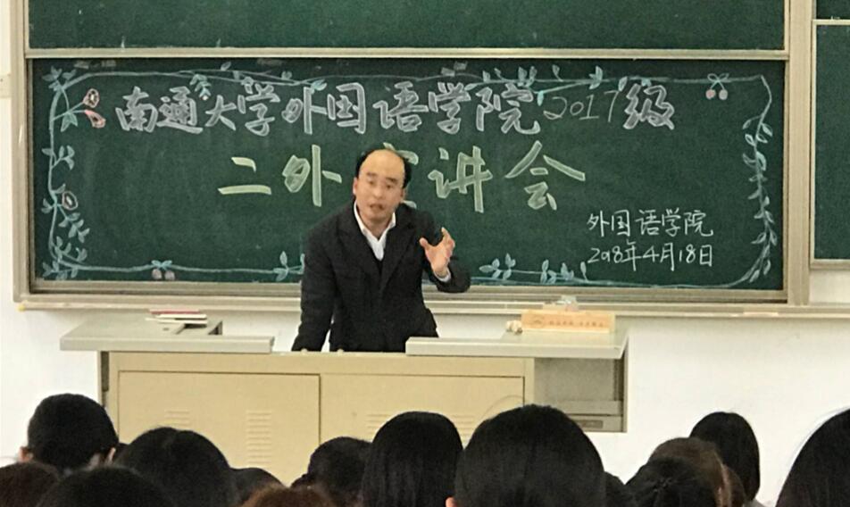 为深化17级学生对《第二外语》课程的认识,4月18日下午,yl8cc永利官网在JX04-107面向2017级全体学生举办二外语种选报宣讲会。日语系副主任龙臻、公共外语教学部李红梅、安娜作宣讲。