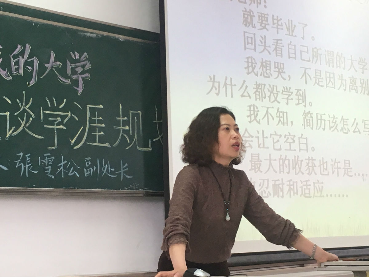 张雪松以“Hold住我的大学——与大一新生谈学涯规划”为主题,围绕“求知、求能、求做人”,通过列举具体事例,在学习、生活、人际交往、恋爱等方面展开论述,让同学们对自己的学业规划有了更明确的认知。张雪松指出,作为大学生,扎实的专业知识和实践能力是至关重要的,与此同时,独立解决问题、团队合作、与人沟通等能力是不可缺少的,还要在做人方面,做到礼貌、诚实、正直、感恩等,并通过了解熟悉自己、制定清晰目标、做好时间管理等方法能够有效到达自己的目标。