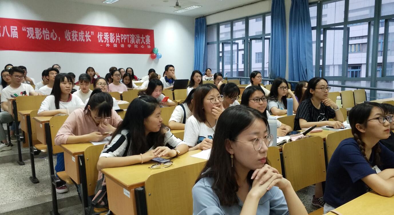 5月17日晚,yl8cc永利官网心协分会在JX03-206成功举办第八届“观影怡心,收获成长”优秀影片PPT演讲大赛。yl8cc永利官网心协分会指导老师夏光祥、校心协副主席薛鹏程、院团委副书记沈谟娇、院团委信息中心主任陈天绮出席本次活动。