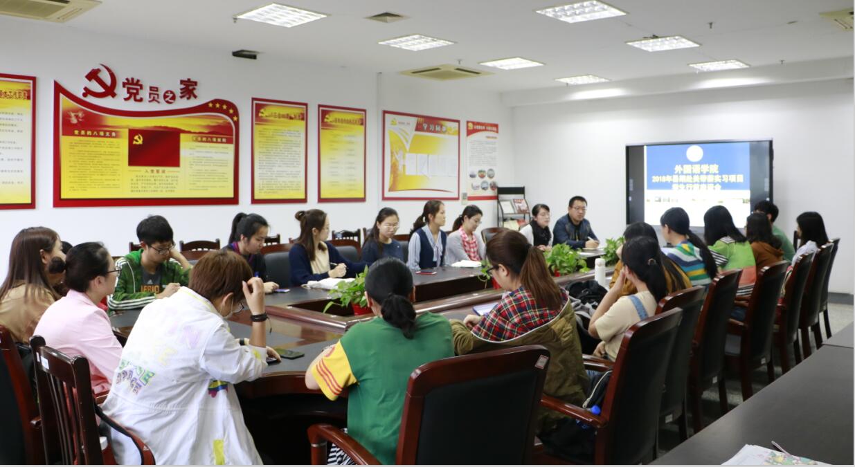 5月25日,yl8cc永利官网2018年暑期赴美带薪实习项目学生行前座谈会在JSJ-208会议室举行。学院学工办主任顾亚梅、团委书记王媛媛、辅导员施旋、夏光祥以及全体项目学生参加座谈会。