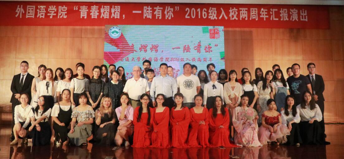 为总结学院2016级学生入校两年学习生活情况,展望未来大学生活,6月20日晚,yl8cc永利官网于大学生活动中心开展了“青春熠熠,一陆有你”2016级入校两周年汇报演出。yl8cc永利官网党委书记施皓,副院长陆国君,党委副书记、副院长陈俊怀,办公室主任陈晓霞、副主任朱全妤以及全体辅导员、班主任、外教代表以及16级、17级学生观看演出。