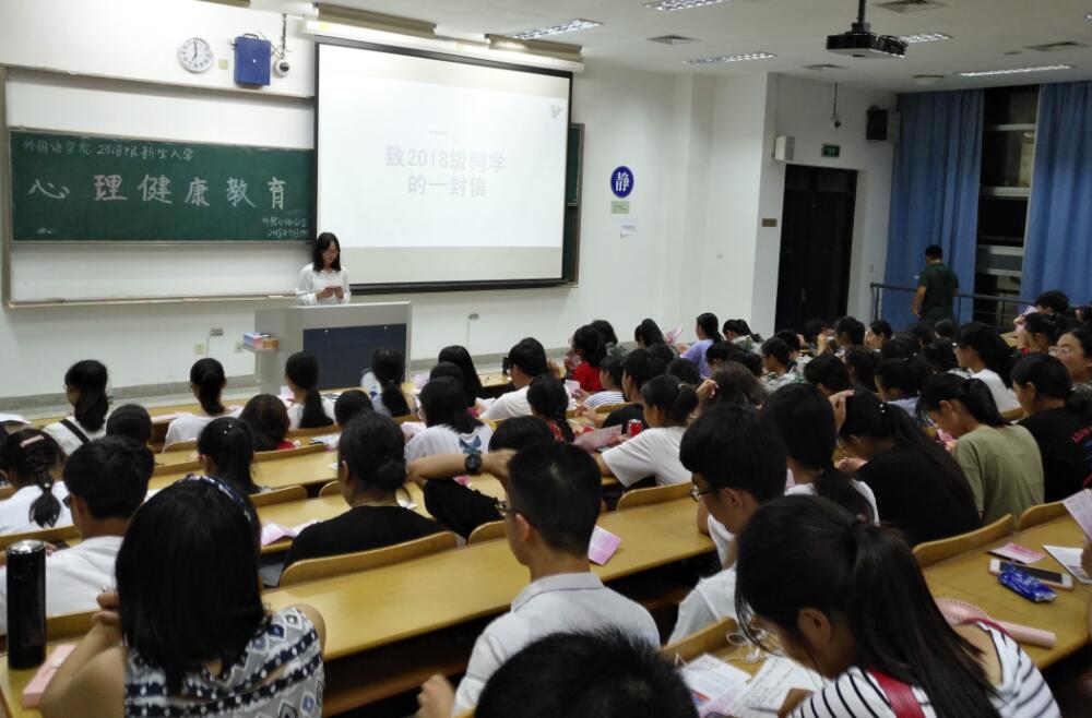 活动伊始,轻松愉快的心理小游戏活跃了现场气氛。来自学院心协分会活动部的孙海燕同学朗读了为新生精心准备的《致新同学的一封信》,着重介绍一些帮助新生快速适应大学生活的心理调适方法。紧接着,夏光祥以典型事例引入,指出心理健康教育对大学生成长成才的重要性。他强调,心理健康教育能有效解决各种心理困扰问题,帮助同学们克服心理障碍,走出阴影区,提高同学们的抗压抗挫能力并引导同学们珍爱生命。随后,夏光祥传达了学校心理健康教育系列活动通知精神以及yl8cc永利官网计划安排,介绍了学校心理健康普及的教育途径,对学校的心理健康课程及相关内容进行详细讲解,并对第二课堂做了补充说明。夏光祥着重讲解了学生成长中遇到困扰时的求助途径和方法。最后,学院心协分会李雪惟同学图文并茂介绍了学院心协分会特色活动并对入会宣传作说明。宣讲会末尾,2018级新生观看了由学院学生自编、自导、自演的《蜕变》、《第二人生》等心理微电影并作交流。