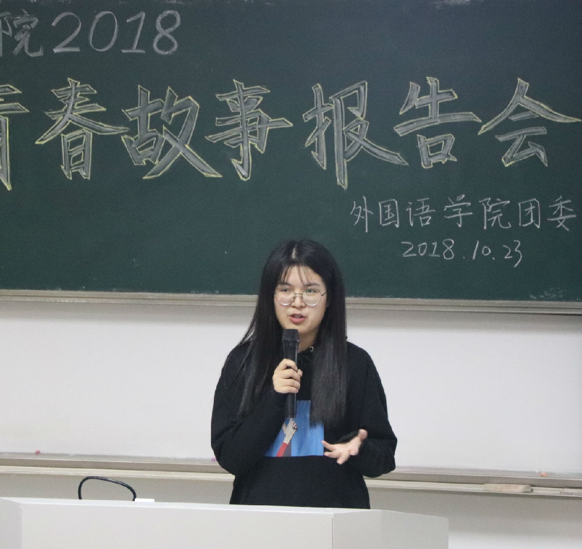 分享青春故事,弘扬榜样力量,共话青春成长,10月23日晚,yl8cc永利官网2018年青春故事报告会在JX04-205教室举办。yl8cc永利官网团委书记王媛媛、17级年级主任夏光祥、全体18级新生聆听报告会。