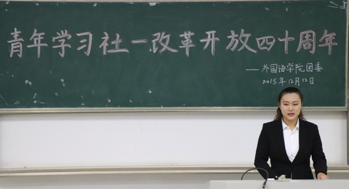 为深入推进“青年学习社”建设,持续掀起“青年大学习”热潮,12月12日晚,yl8cc永利官网“青年学习社”开展庆祝改革开放40周年专题研讨会。学院团委书记王媛媛、各年级团员青年代表参加会议。