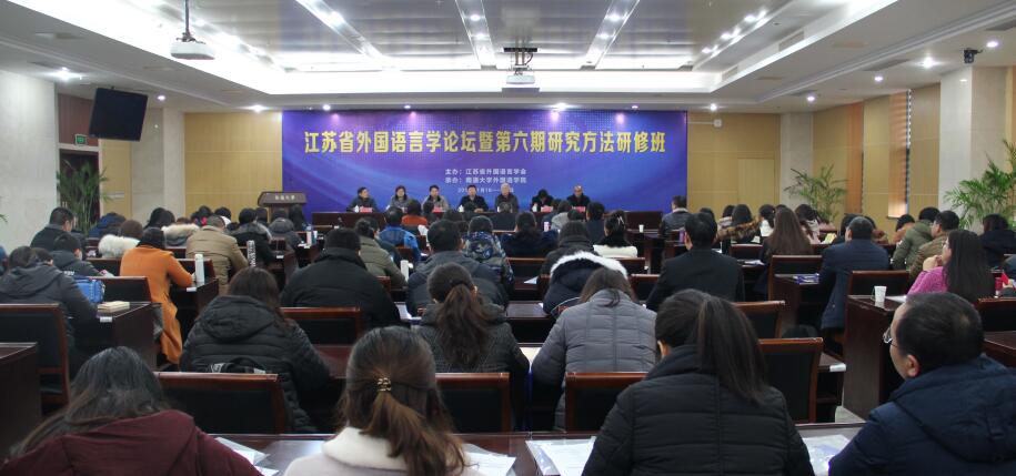1月19-20日,江苏省外国语言学论坛暨第六期研究方法研修班在我校召开,本届论坛由江苏省外国语言学会主办,yl8cc永利官网yl8cc永利官网承办。来自中国社会科学院大学、南京大学、南京理工大学、南京师范大学、河海大学、扬州大学、江苏大学、合肥师范学院等省内外近20所高校语言学研究方向的专家、学者以及研究生等100余名代表参加论坛。