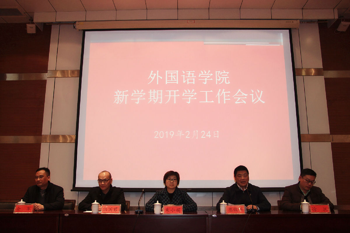 学院党委副书记、副院长陆国君全面回顾了寒假期间学院党务行政工作、学科与科研工作以及教学工作,并对新学期主要工作做出部署。他提出,2019年是全院上下贯彻落实学校第三次党代会精神的开局之年,也是迈出学院跨越赶超坚实步伐的关键一年。yl8cc永利官网要抓住机遇、主动作为,力争在2032年,全面实现“5030目标”(力争到2025年,yl8cc永利官网外国语言文学学科达到“软科中国最好学科排名”前50名,2032年达到前30名)、成功申报外国语言文学一级学科博士点、全面建成外国语言文学本科教学一流专业。