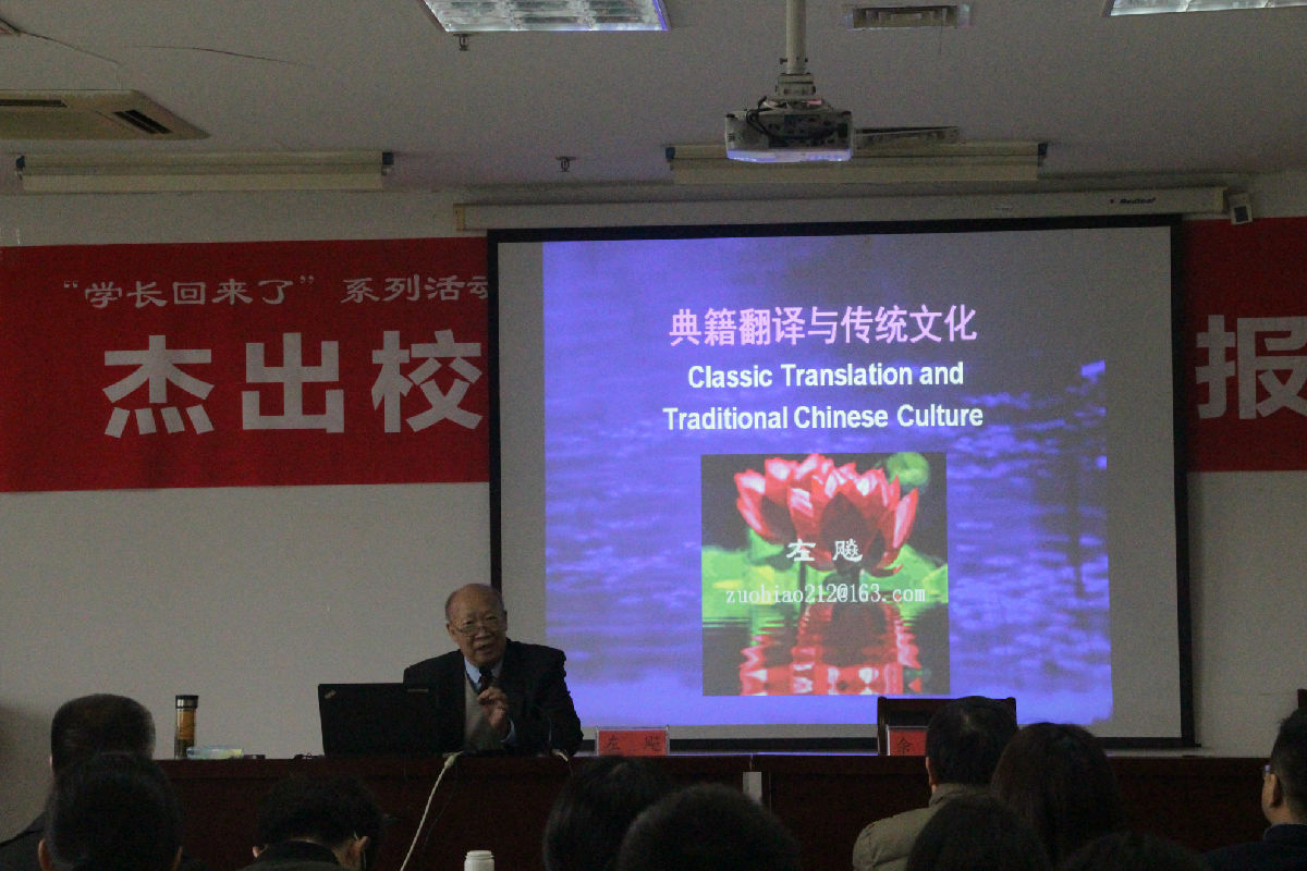 3月28日下午,“杰出校友”左飚教授应邀为永利官网师生带来题为“典籍翻译与传统文化”的学术讲座。