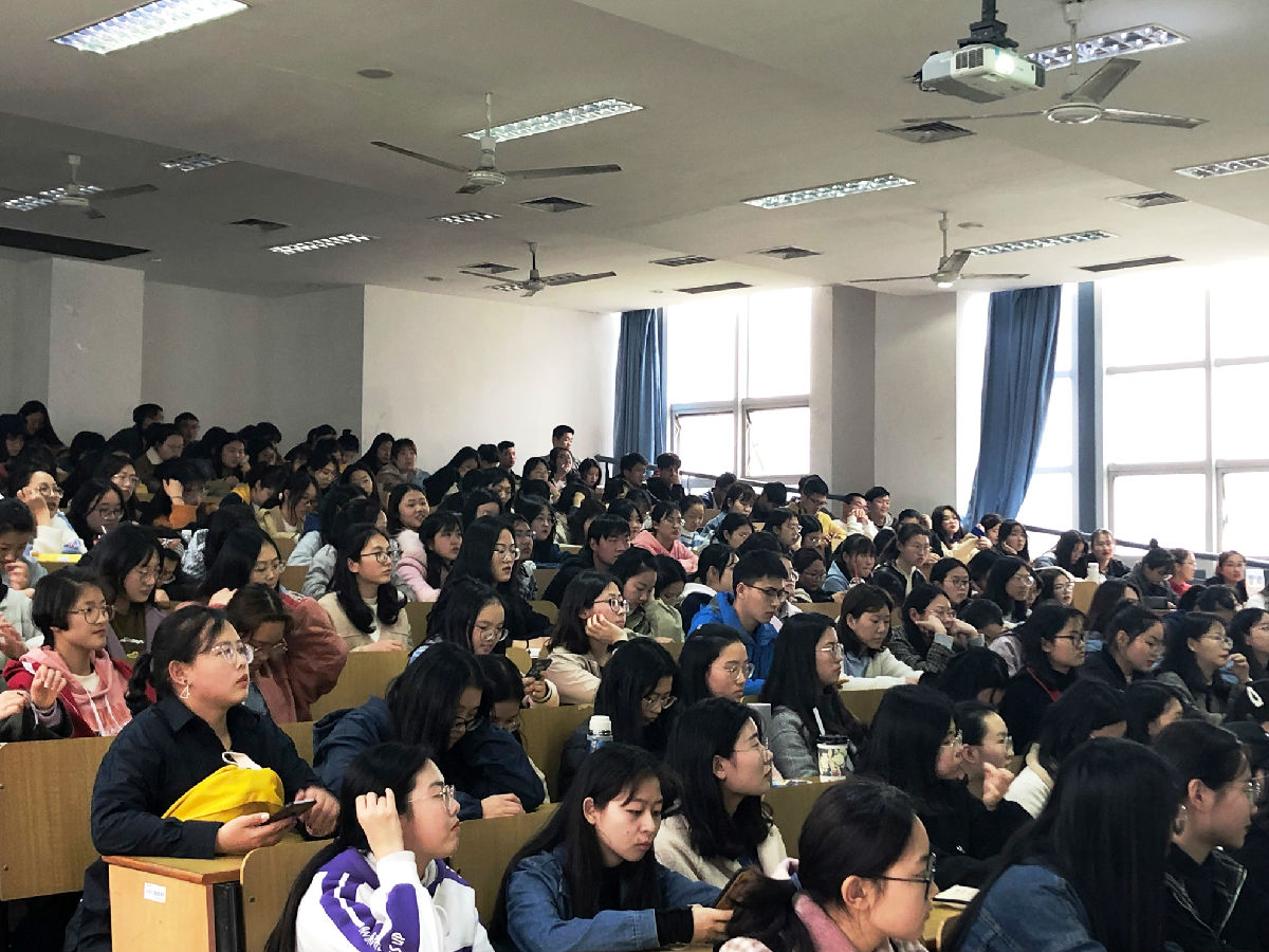 大会过程中,王媛媛为大家分析了学院人才培养方案,对各个专业的学位课程和取得学士学位的条件等作概述。翻译182班陈咏琪、卓子琦两位同学分享了寒假期间各自参加泰国中文支教和赴美调研项目的经历与感悟。2016级沈艳君、游方晓、王梓力三位高年级学生从语言特点、授课模式、升学优势、职业发展等方面为英语类专业学生,分别作日语、法语、韩语的二外宣讲。