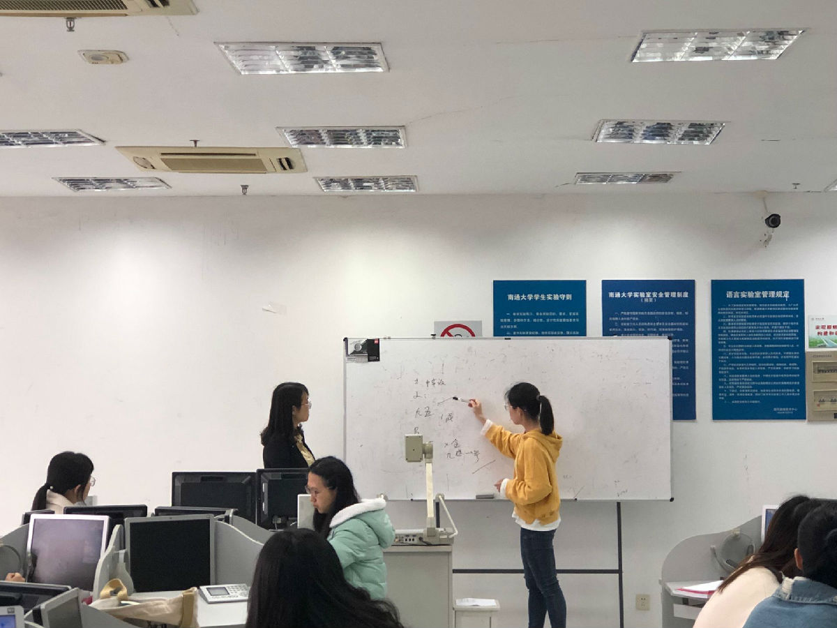 课堂上,姜海红老师用《中国金融介绍》作为训练材料,对口译的各种技能进行训练,包括记忆能力、笔记法、复述、交替传译能力等。除课本内容外,示范课还进行了延伸拓展,利用课外材料开展实战练习,从而锻炼了同学们数字口译的相关能力。