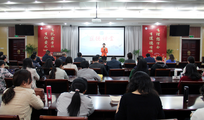5月8日下午,由党委宣传部、yl8cc永利官网联合主办的yl8cc永利官网道德讲堂在啬园校区图书馆隆重举行。国家万人计划“教学名师”、博士生导师周建忠教授,校党委常委、宣传部部长吉明明,教师工作部部长、高层次人才工作办公室主任、人事处副处长李清湘等应邀出席了活动。