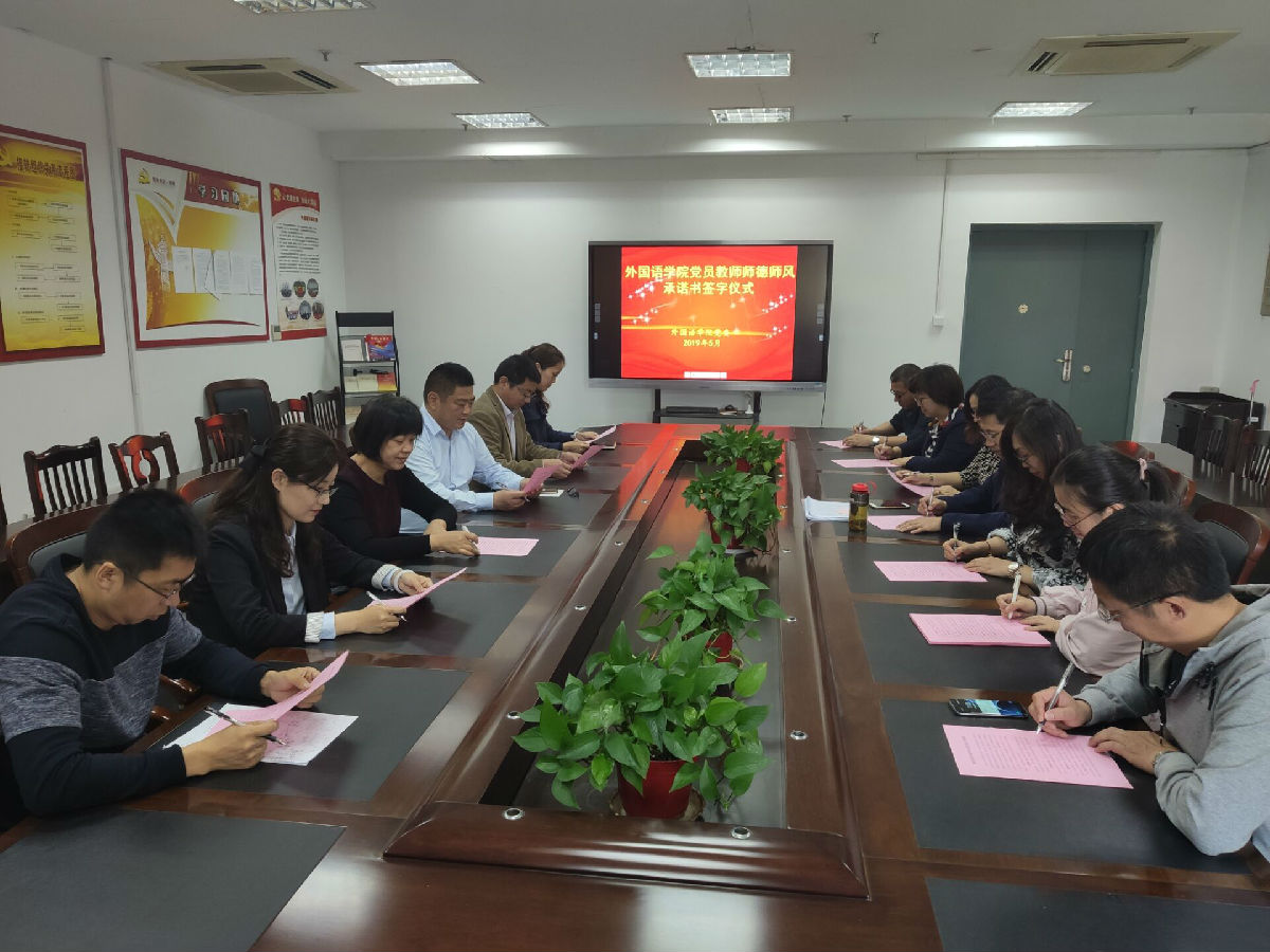 近日,yl8cc永利官网党委举行师德师风专题教育活动,全体党员教师重温了《新时代高校教师职业行为十项准则》, 学院党委书记朱小娟要求全院党员教师要牢记自己是一名党员教师,是广大教师群体中的先进分子,应该率先严格遵守教育部提出的《新时代高校教师职业行为十项准则》,守好底线,更要自觉追求高线,按照习总书记提出的要求,争做“四有”好教师,为学生的成长、学院的进步和学校的发展贡献力量。全体党员教师郑重签署了师德师风承诺书,庄严承诺将严格遵照执行相关要求,把教书育人与自我修身相结合,以德立身,以德立学,以德施教,自觉接受学校、家长、社会舆论的监督,争做“四有”好教师。