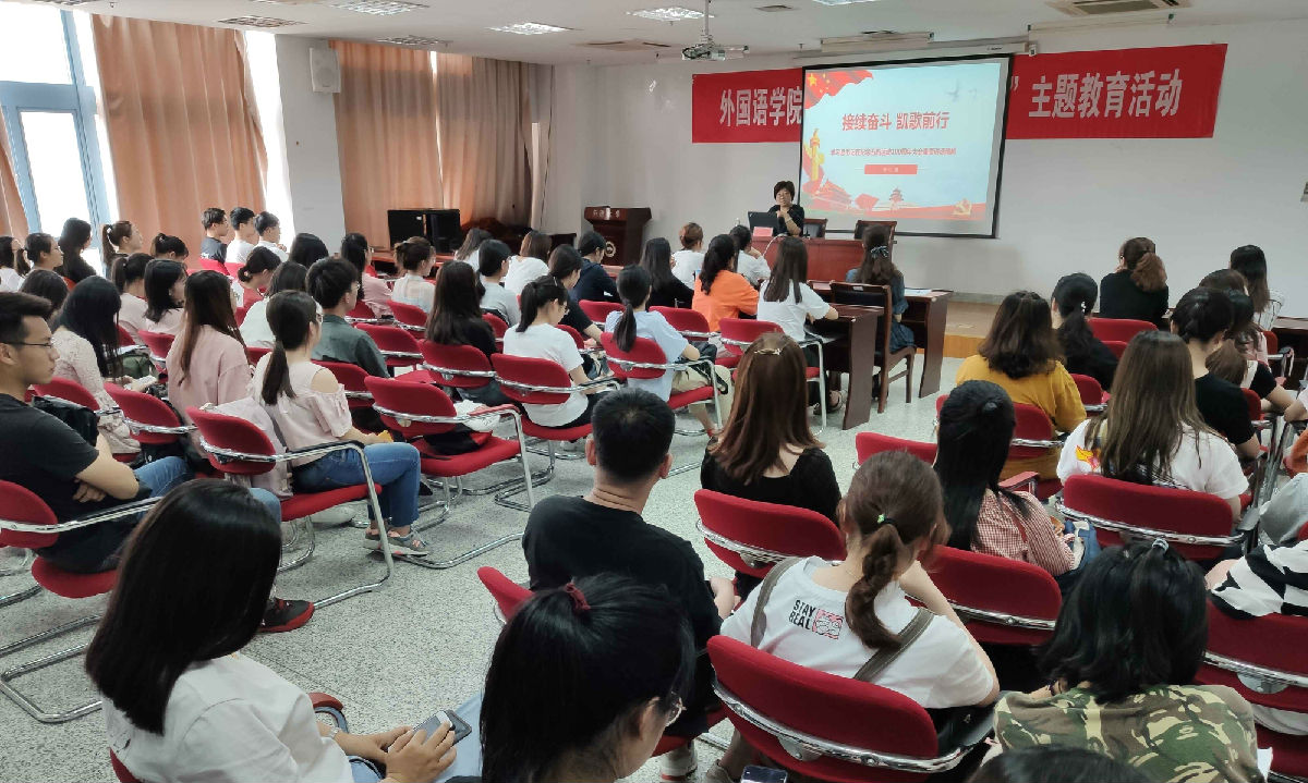 6月12日下午,yl8cc永利官网党委书记朱小娟以《接续奋斗 凯歌前行——学习习近平总书记在纪念五四运动100周年大会重要讲话精神》为题给全院学生党员上了一堂生动的党课。