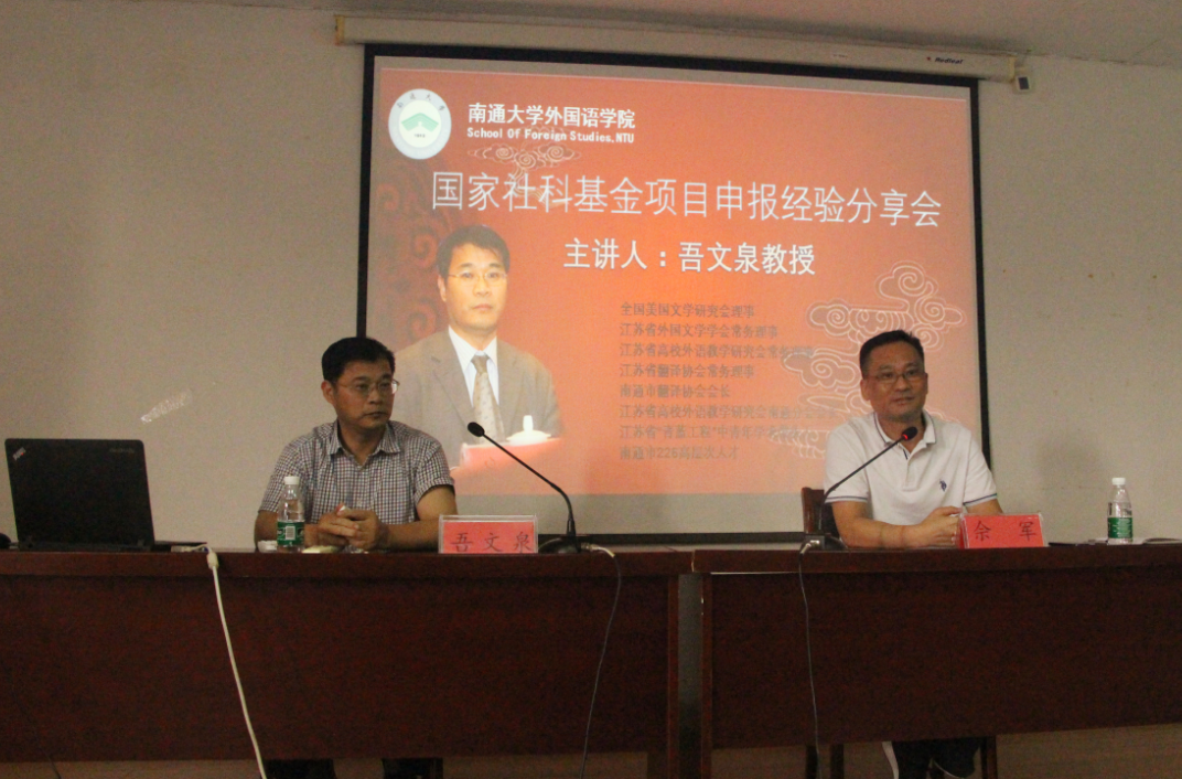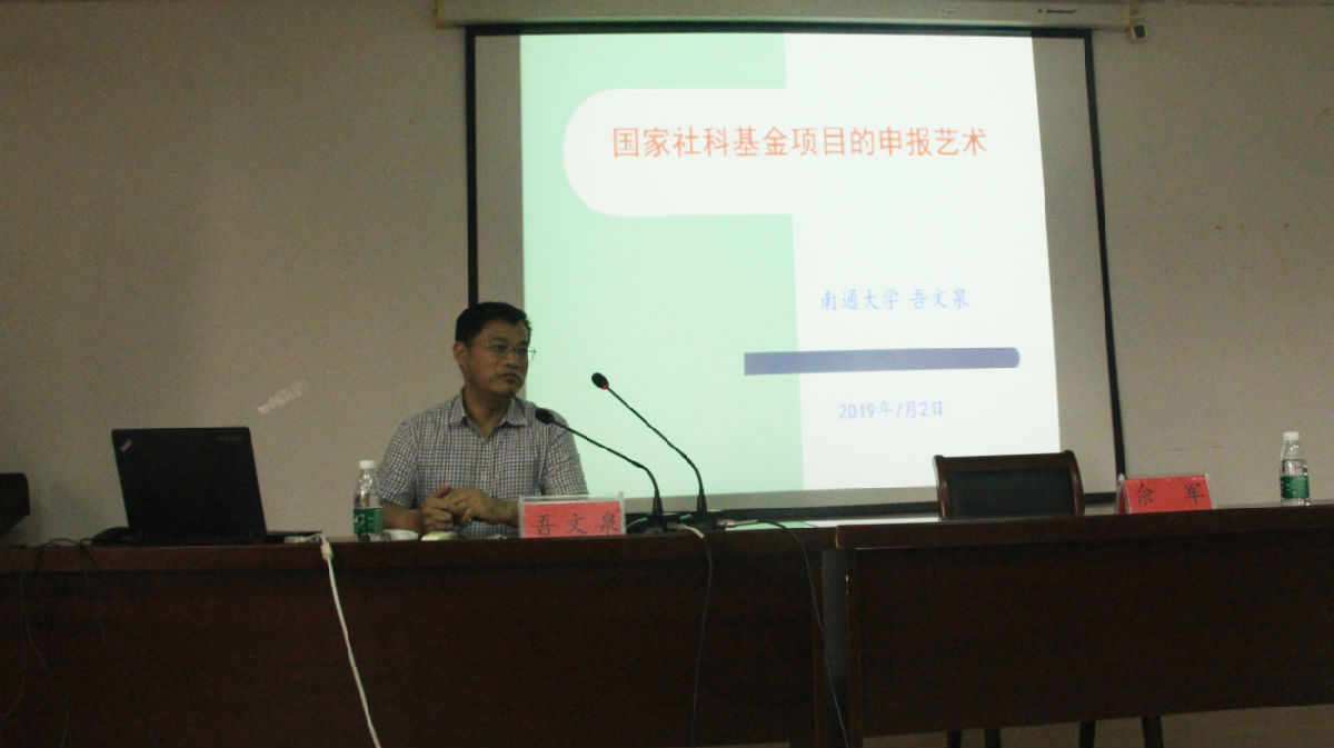 7月2日下午,永利官网吾文泉教授应邀与学院中青年教师分享国家社科基金申报经验。佘军副院长主持分享会。