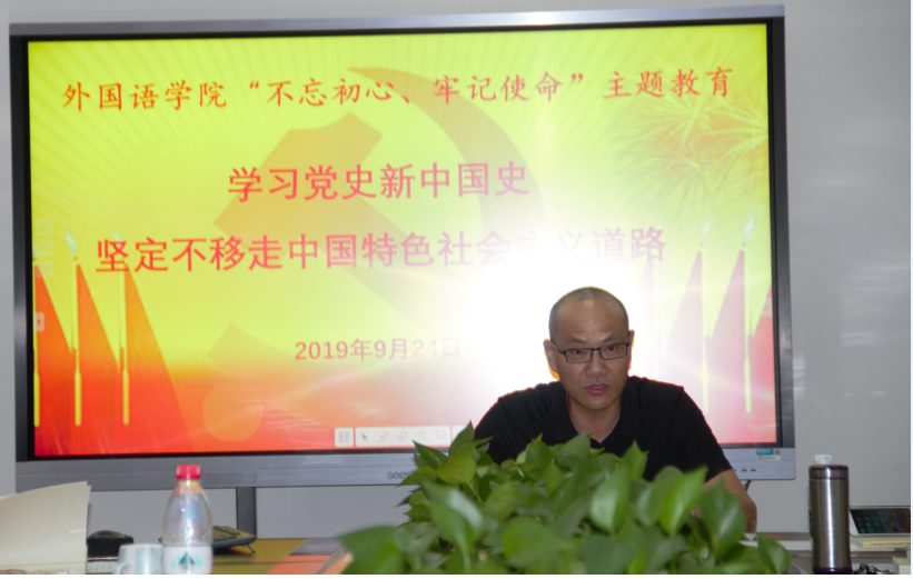 最后,陆国君强调要深入学习贯彻习近平总书记关于党史、新中国史的重要论述,把学习领悟党史、新中国史作为必修课,在学习过程中汲取坚定的信仰、信念、信心,把学习成效转化为思想成果和实践成果,为学院的建设发展与学校“8050计划”的实现做出应有贡献。