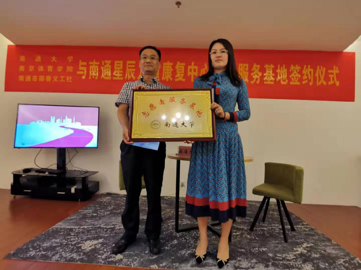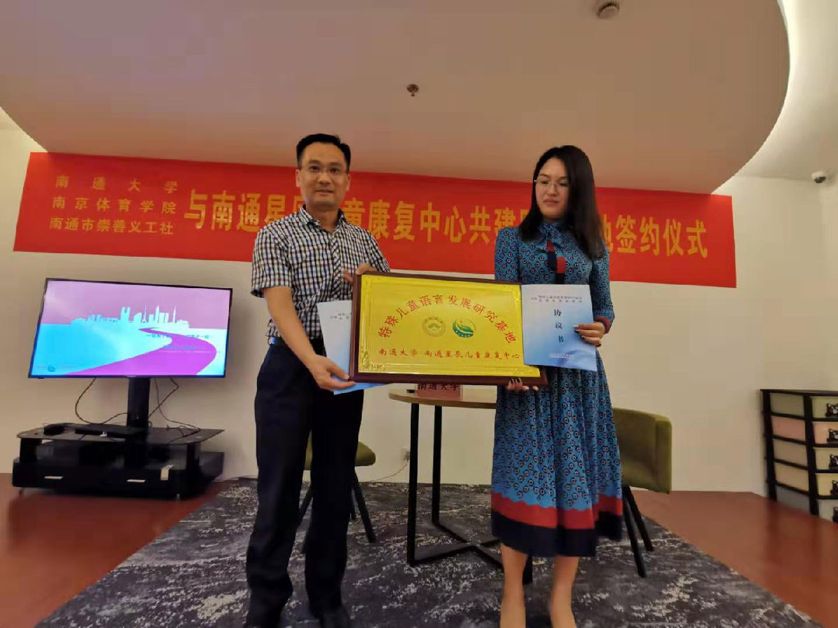 当日,南京体育学院及南通崇善义工社也分别与南通星辰儿童康复中心签约服务共建基地并授牌,南通市残联及团市委领导出席签约仪式。(何旭良)