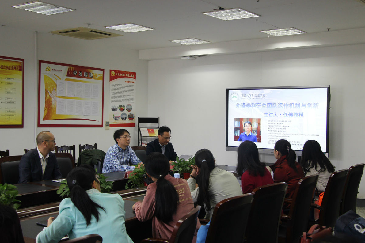 又讯 当日上午,任教授在学院208会议室,就“外语学科研究团队运作机制与创新”的话题同外院教授、科研团队负责人及青年教师交流。座谈会由学院副院长佘军教授主持,陆国君院长参加座谈会。
