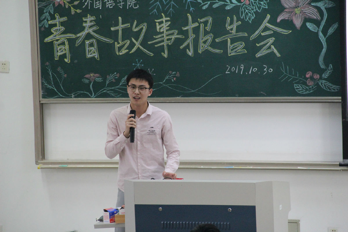 报告会上,11位高年级优秀学生分享了精彩的青春故事。社会实践先进个人、商务英语171班王鼎鹿和翻译182班陈正潮等同学汇报了暑假赴河南信阳助学支教以及开展公益英语夏令营等志愿实践活动中的的困扰、成长与收获,号召大家积极参与公益服务活动,弘扬“莫文隋”志愿者精神。曾赴英国剑桥大学、伦敦大学、爱丁堡大学,香港大学等高校学习的英语172班杨援军、商务英语172班韩笑、日语172班何岩、翻译171班李素、英语师范172班严宇晴、潘戈涵、英语师范182班陈心如、日语182班张舒越等同学,分享了各自海外学习交流和志愿服务经历,鼓励大家读万卷书行万里路,感受异域风情,体会多元文化,加强专业实践,开拓国际视野。