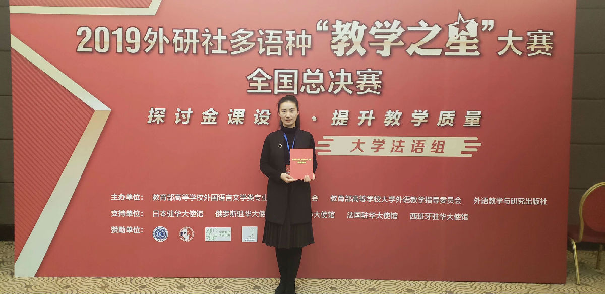 2019年12月6-8日,由教育部高等学校外国语言文学类专业教学指导委员会、教育部高等学校大学外语教学指导委员会和外语教学与研究出版社共同举办的2019年外研社多语种“教学之星”大赛全国总决赛在北京举行。来自全国70余所高校的112名多语种教师,全国高校、各国驻华大使馆教育处、文化中心等近40位外语教育专家和嘉宾齐聚一堂,用智慧与风采共铸时代“金课”。经过说课、现场授课和专家提问三个环节的激烈角逐,永利官网安娜老师最终荣获大学法语组亚军,充分展现了我校青年教师过硬的专业素质和良好的精神风貌。