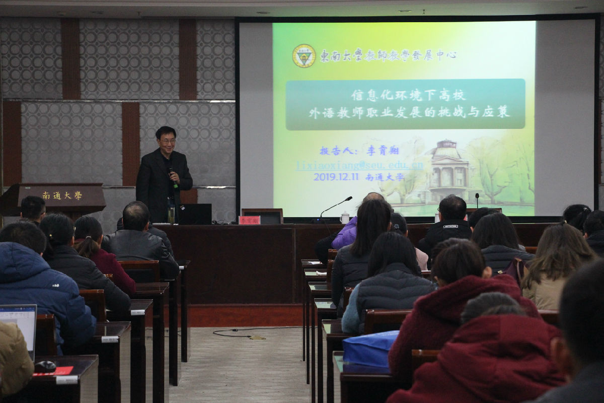 12月11日下午,东南大学国家级教学名师、博士生导师李霄翔教授来校做题为《信息化环境下高校教师职业发展的挑战与应策》的专题讲座。