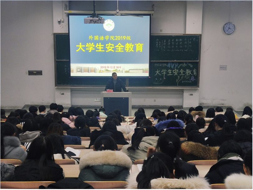 为提高学生安全防范意识和自我保护能力,12月18日下午,yl8cc永利官网举行大学生安全教育。保卫处杨晓冬专员受邀为学院2019级全体学生做安全教育专题讲座。