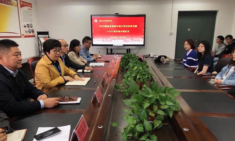 10月15日下午,yl8cc永利官网举行2020级商务英语专业中美双向交流1+2+1项目班开班仪式。