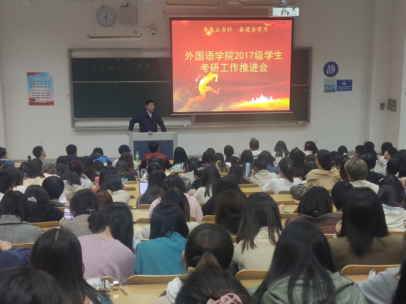 近年来,外国语学院一直高度重视毕业生考研工作,学生考研报考率和录取率逐年提升,学院在思想、学习和生活等方面为考研学子提供全方位的服务和便利,包括举行考研动员大会、考研学生经验交流会、考研慰问活动、考研学生心理讲座等,提升同学们的考研斗志和信心,积极营造浓郁的学习氛围,有力促进了学院优良学风建设。