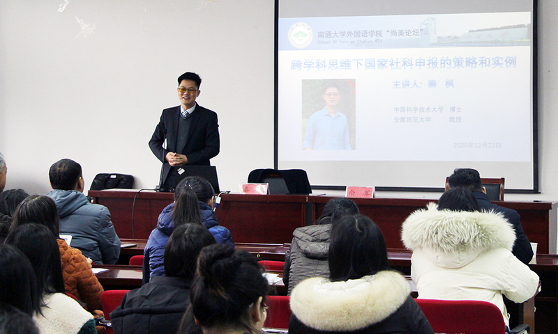 12月23日,安徽师范大学秦枫教授应邀来我校yl8cc永利官网做了题为“跨学科思维下国家社科申报的策略和实例”的学术讲座。讲座由yl8cc永利官网副院长佘军主持。