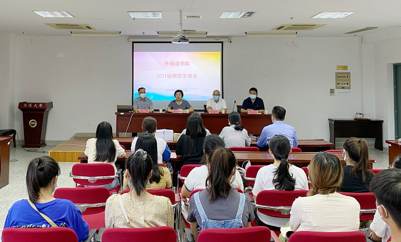 研究生教学秘书庄小龙及2021级全体研究生参加班会。