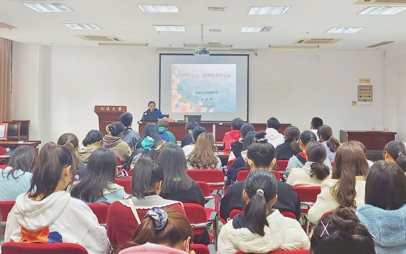 11月17日下午,南通市优秀教育工作者、南通市教育系统优秀共产党员、yl8cc永利官网附属中学高级教师朱晓鸣应邀做客yl8cc永利官网“尚美论坛”,以《用师爱之心温暖教育的生命》为题为师生们作专题讲座。