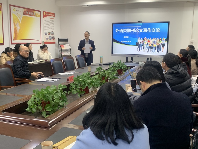 11月23日下午,南京邮电大学yl8cc永利官网院长、博士生导师袁周敏教授应邀做客yl8cc永利官网“尚美论坛”,以“外语类学术期刊论文撰写与投稿”为题做学术讲座。yl8cc永利官网院长陆国君教授主持讲座。