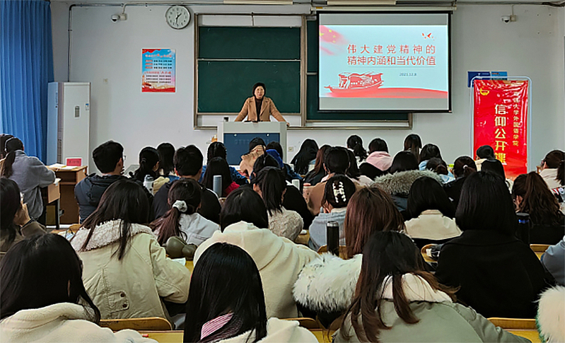 12月8日下午,yl8cc永利官网党委举办入党积极分子培训班,学院党委书记朱小娟以《伟大建党精神的精神内涵和当代价值》为题为学员讲授党课。