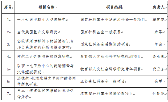 近日,全国哲学社会科学工作办公室和江苏省哲学社会科学规划办公室分别发布2021年国家社科基金后期资助暨优秀博士论文项目立项书和2021年江苏省社科基金项目立项书。永利官网单谊博士的项目“实验语用学视阈下的话语标记音形义系统实验分析与模型建构”喜获国家社科基金后期资助项目立项,佘军教授的项目“温德尔·贝瑞农耕文学创作的共同体想象研究”和付改华博士的项目“日本主流媒体涉苏报道的批评话语分析”获得江苏省社科基金项目立项。至此,永利官网2021年共获得省部级以上项目7项,其中,国家社科基金项目3项、教育部人文社会科学研究项目2项和江苏省社科基金项目2项。另外,永利官网2021年获得市厅级立项项目4项。人文社科研究纵向科研经费累计获得120万元。
