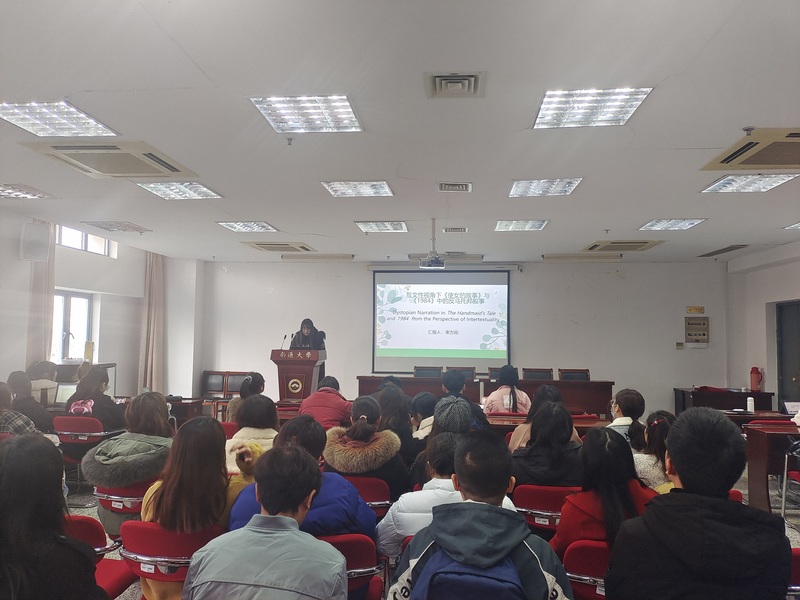 束方闻同学分享了互文性视角下《使女的故事》与《1984》中的反乌托邦叙事的研究现状等;周茜同学就《大地》中的中西神话形象进行了深入探讨,剖析了中西文化的相通之处,揭示《大地》的普世价值;李奕盈同学从后殖民女性主义理论视阈出发,聚焦《美国佬》中的三位代表女性,探究阿迪契小说《美国佬》的女性身份书写。