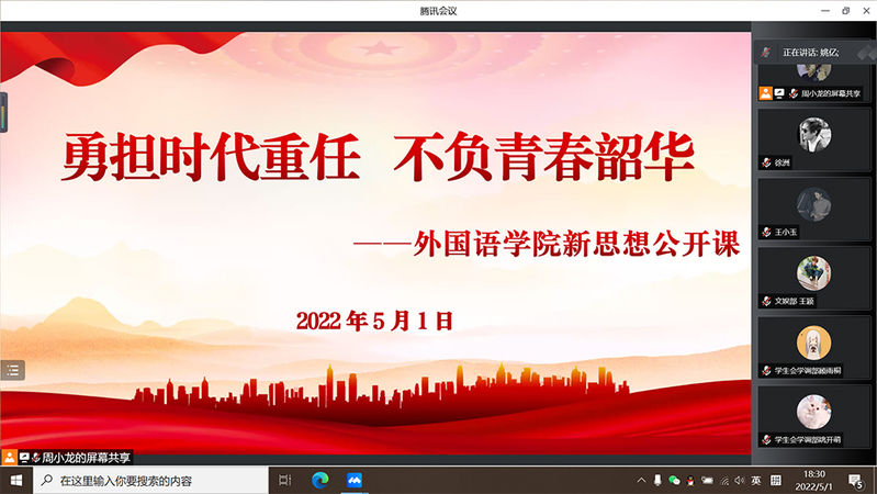 5月1日,yl8cc永利官网以线上方式举办主题为“勇担时代重任 不负青春韶华”的新思想公开课。