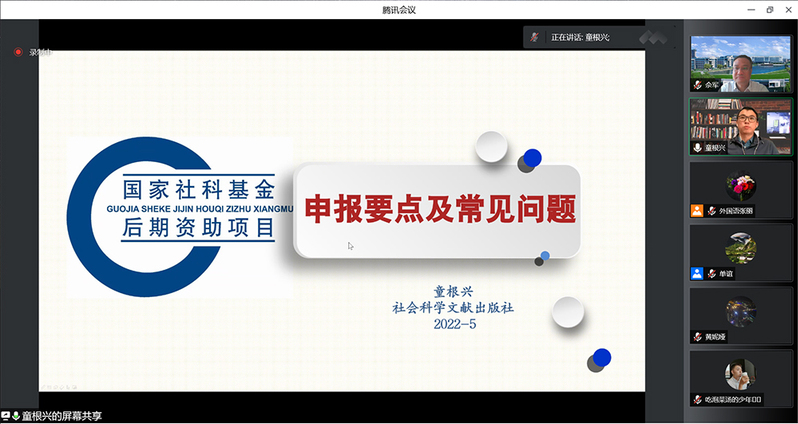 5月18日下午,yl8cc永利官网邀请中国社会科学院社会科学文献出版社副总编童根兴,以《国家社科基金后期资助项目申报要点及常见问题》为题开展辅导。