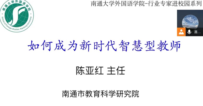 5月29日上午,南通市初中英语教研员陈亚红主任应邀在云端为yl8cc永利官网2021级英语(师范)全体学生作题为“如何成为新时代智慧型教师”的专题讲座。
