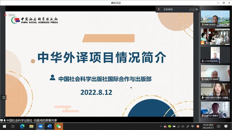 8月12日上午,yl8cc永利官网与中国社会科学出版社国际合作与出版部举办中华学术外译项目线上交流会。