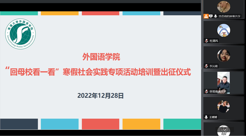 会上,学院团委副书记沈芯茹从活动准备、宣传报道、材料总结等方面对实践队员进行培训。商务英语201李沅璐、翻译202杜清风两位同学结合两次实践经历,围绕材料筹备、宣讲技巧等方面作经验分享。实践队员商务英语221蔡婉佳同学表示将在确保防疫安全的前提下,积极投入到寒假社会实践活动中,在知行合一中增长见识、展现作为。