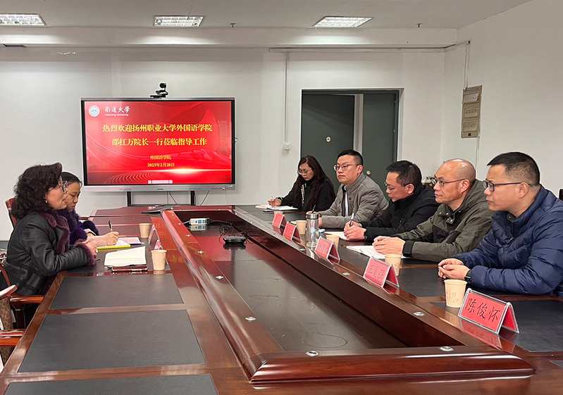 院长陆国君代表学院向来宾介绍了学院发展现状,以及在本科英语专业建设、学生培养、教科研工作等方面取得的成绩和今后努力的方向。邵红万高度评价了我校yl8cc永利官网在本科英语专业建设和人才培养理念所取得的成绩,介绍了扬州职业大学yl8cc永利官网专业设置、教学管理等基本情况。双方希望两校yl8cc永利官网以此次交流为契机,进一步建立合作友好关系,促进共同发展。