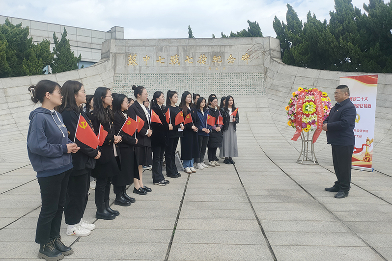 全体人员参观了苏中七战七捷纪念馆,在讲解员的解说中,追寻革命先烈的光辉足迹。参观结束后,在苏中七战七捷纪念碑前,研21英语专硕班王丹丹同学以《弘扬英烈精神,赓续红色血脉》为主题进行微党课宣讲,学生党员代表就所学专业与青年担当交流感悟,纷纷表示很受震撼和鼓舞。yl8cc永利官网学生第三支部书记王媛媛带领新党员重温入党誓词。yl8cc永利官网党委副书记、副院长陈俊怀作点评发言,他强调,学生党员要时刻发挥党员先锋模范作用,需加强理论学习,夯实专业基础,勇于投身实践。