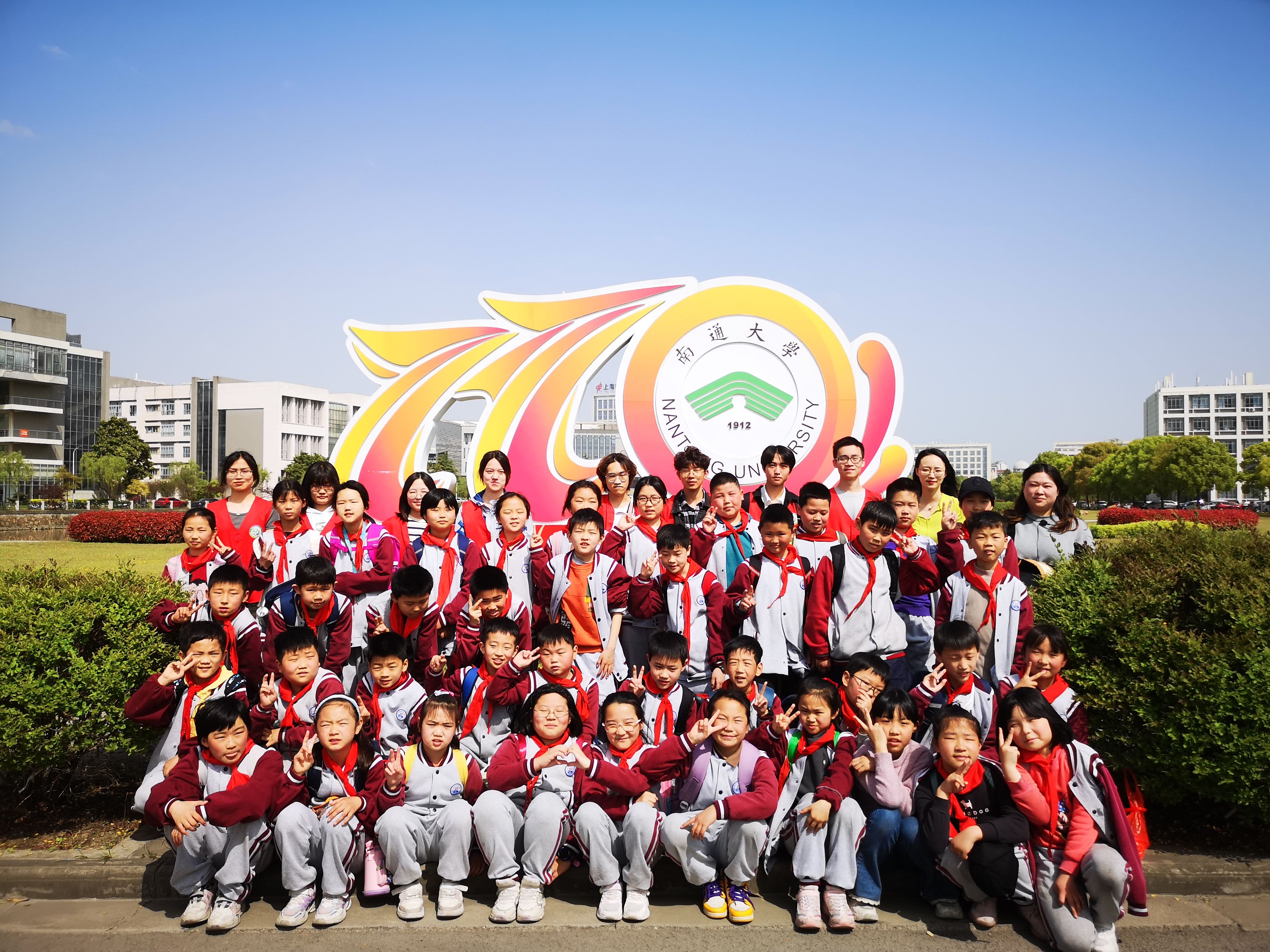 4月13日上午,yl8cc永利官网“百灵鸽”双语志愿者服务队携手南通市陆洪闸小学200余名少先队员,走进我校啬园校区,感受百十余年通大的深厚历史文化底蕴和校园春色。