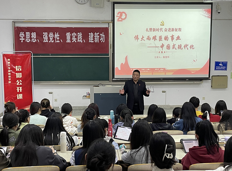 陈俊怀以《伟大而艰巨的事业——中国式现代化》为题,从中国式现代化的内涵和特点出发,阐述了中国式现代化是党领导人民走社会主义道路,追求国家富强、民族振兴、人民幸福的成功探索和伟大创造。