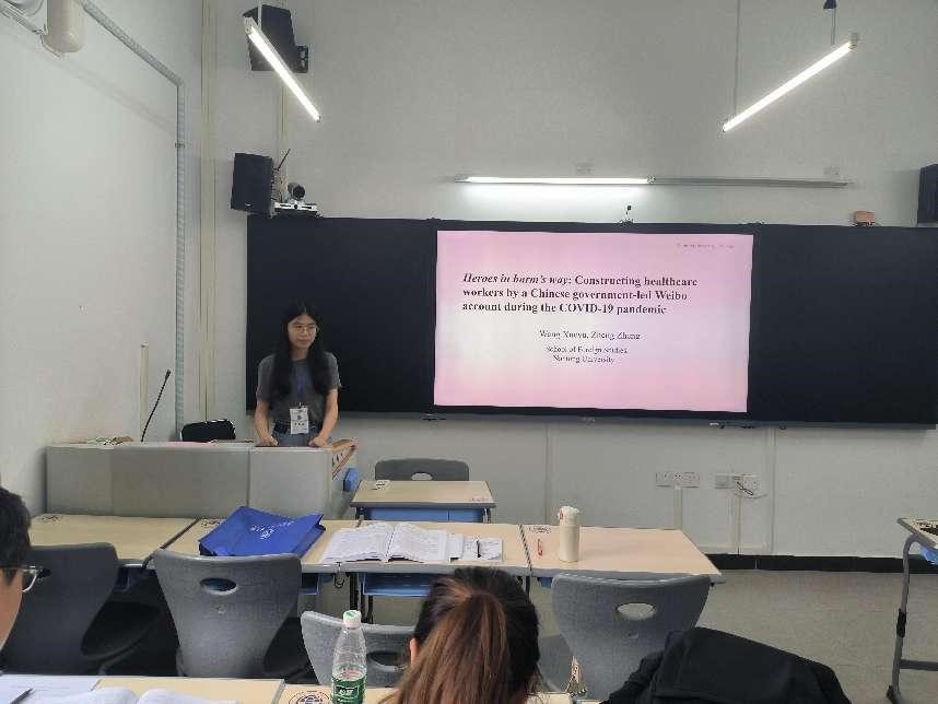 8月25至27日,yl8cc永利官网教授王雪玉及研究生郑峥应邀参加由中国逻辑学会语用学专业委员会主办、广东外语外贸大学外国语言学及应用语言学研究中心承办的“第十八届全国语用学研讨会暨第十二届中国逻辑学会语用学专业委员会年会”。本次语用学年会以“新媒体时代的语用学研究”为主题,王雪玉教授与郑峥同学认真聆听国内外专家学者讲座,并积极参与学术研讨。期间,郑峥同学在“政务新媒体话语的语用研究”专题小组作了题为“Heroes in Harm’s Way: Constructing Healthcare Workers in Chinese Government Microblogs during the Pandemic Crisis (“最美逆行者:政务微博中医护工作者形象的话语建构”)的学术汇报,获与会专家学者好评,取得良好的学术交流效果。