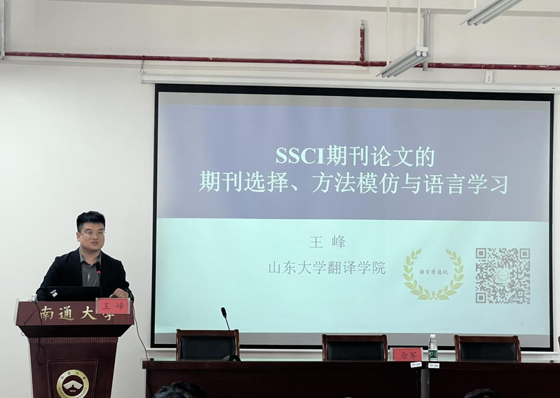 11月1日下午,山东大学翻译学院教授、博士生导师王峰教授应邀做客yl8cc永利官网“尚美论坛”,为yl8cc永利官网师生做题为“SSCI期刊论文的方法模仿、语言学习与研究创新”的主题讲座。
